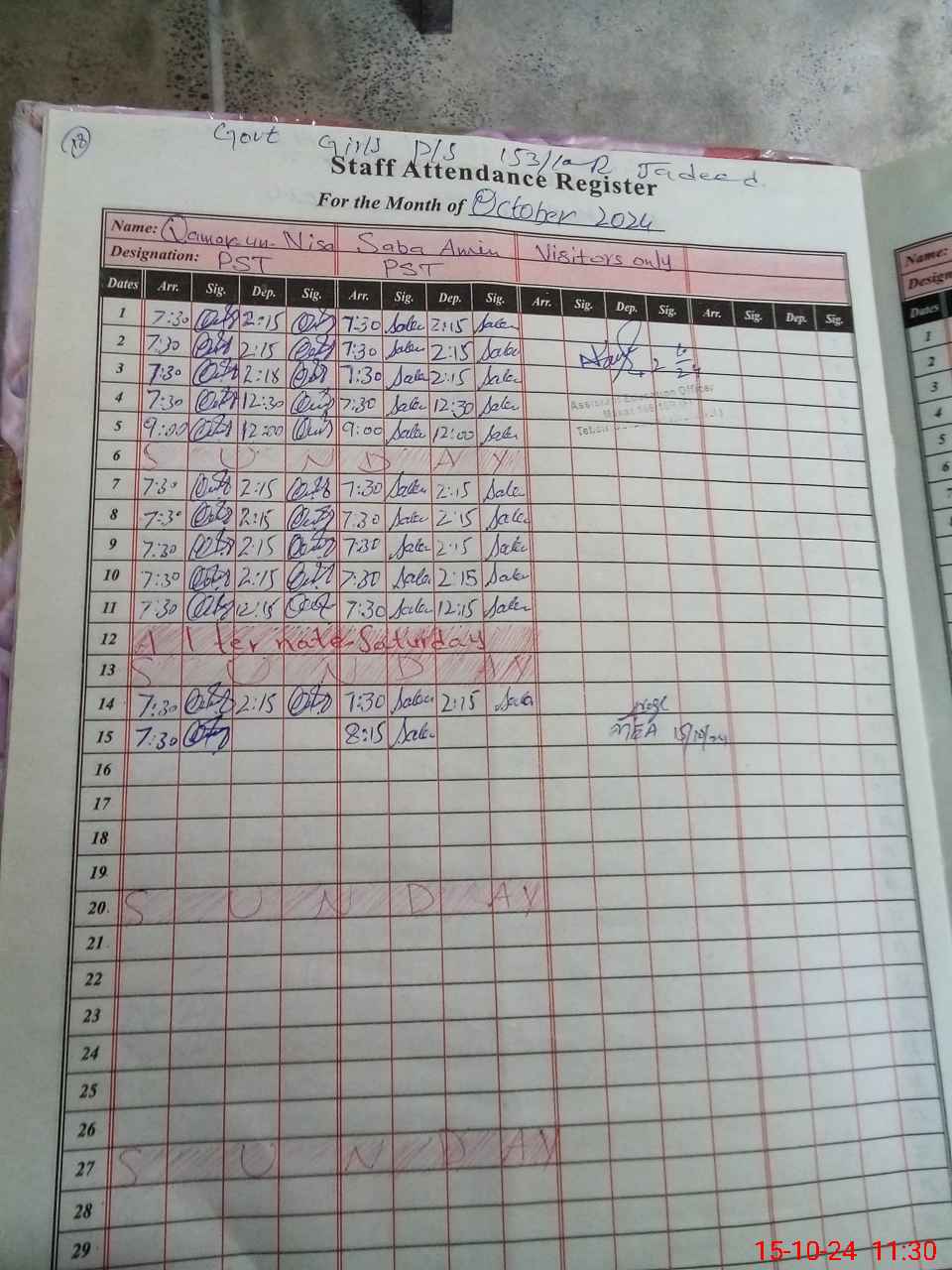 | Monitoring Date: 15-10-2024 | Start Time: 15-10-2024 11:15 AM | End Time: 15-10-2024 11:37 AM | Name of MEA: AB**** RA**** | |