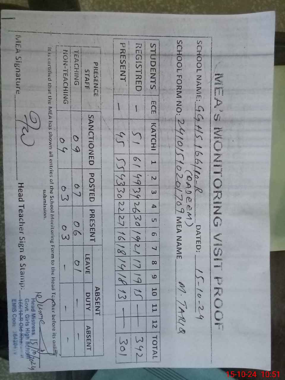 | EMIS Code: 36420419 | Name of School: GGHS 166/10-R QADEEM, KHANEWAL | |||