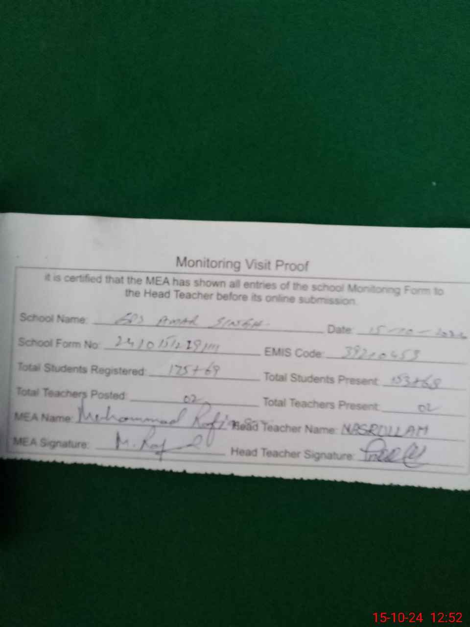 | EMIS Code: 39210453 | Name of School: GPS AMAR SINGH P/O 26/S.P PAKPATTAN | |||