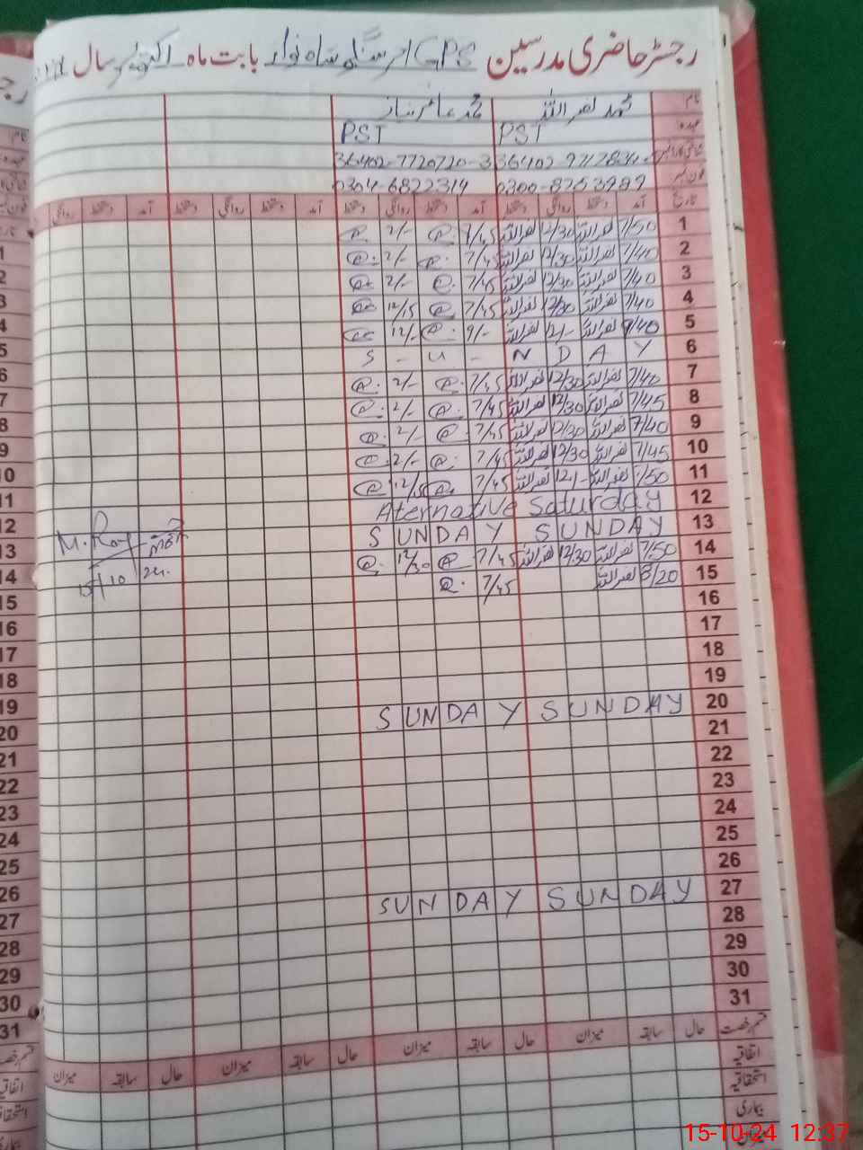 | Name: MAm**** Ni**** Designation: (School Headmaster's/Headmistress's) PST Phone/Cell Number: 03**** |