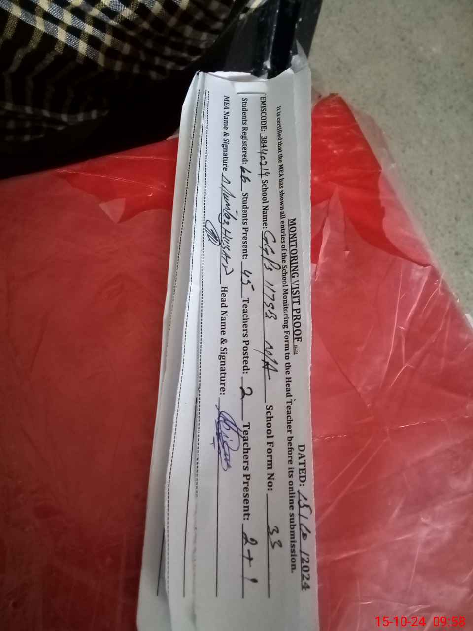 | Attendance Register | Head Teacher | MEA with School | Visit Proof |