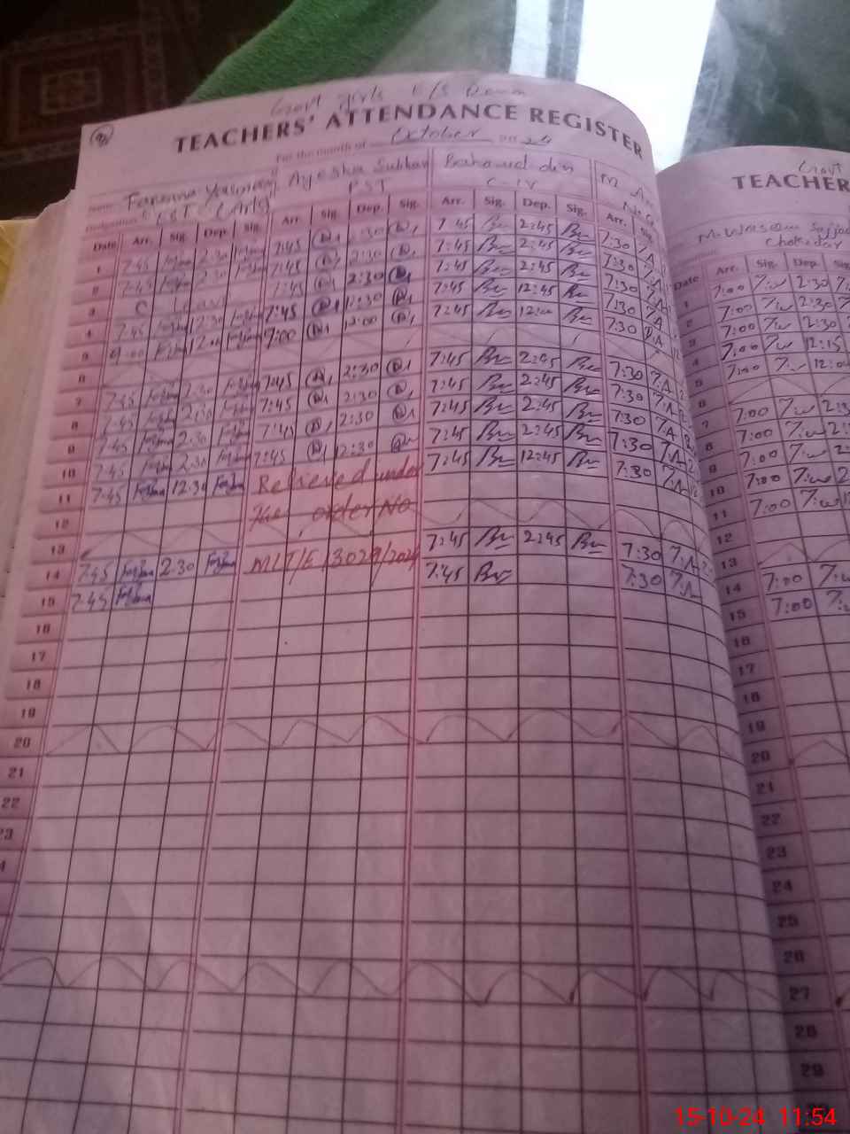 | CNIC | Full Name | Designation | R/C | Absence During Last Calender Month |