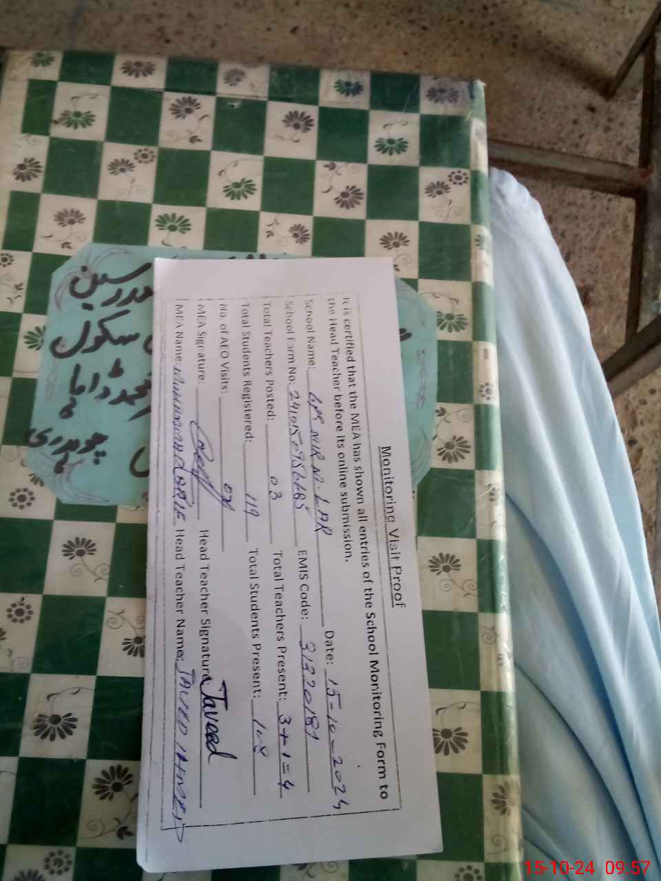 | Certified that this School was Inspected by the Undersigned MEA/DMO Today and the Information Stated Above is as Per Record. | |||||