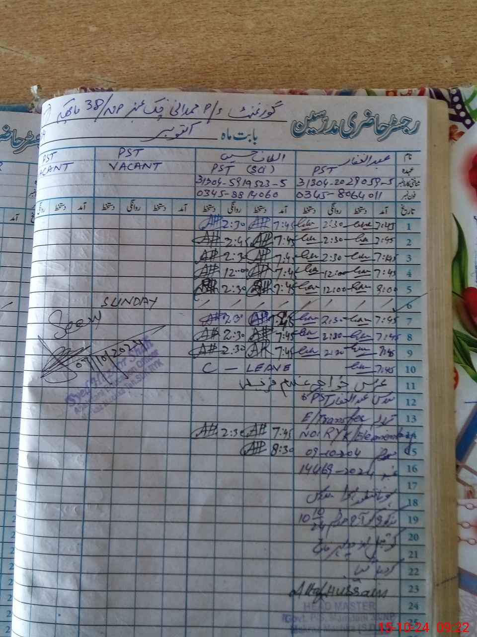 | Name: Al**** Hu**** Designation: (School Headmaster's/Headmistress's) PST/PTC/JV Phone/Cell Number: 03**** |
