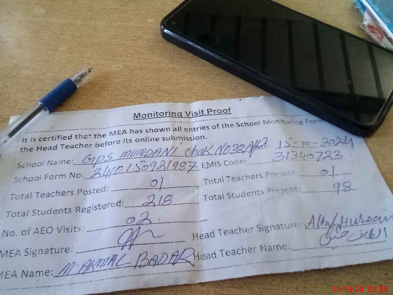 | EMIS Code: 31340723 | Name of School: GPS MUMDNI CHAK NO 38/NP MACHKA | |||