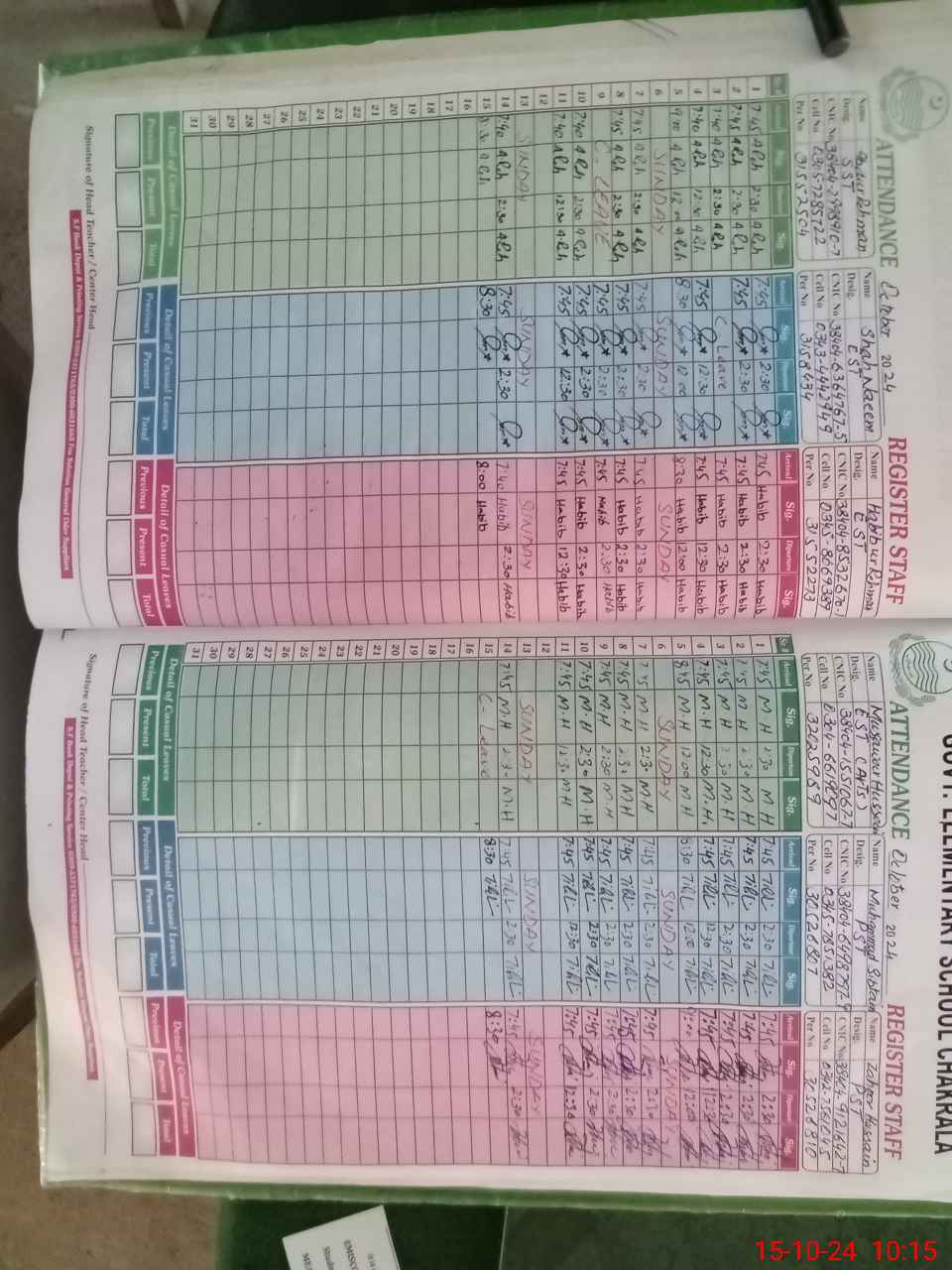 | CNIC | Full Name | Designation | R/C | Absence During Last Calender Month |