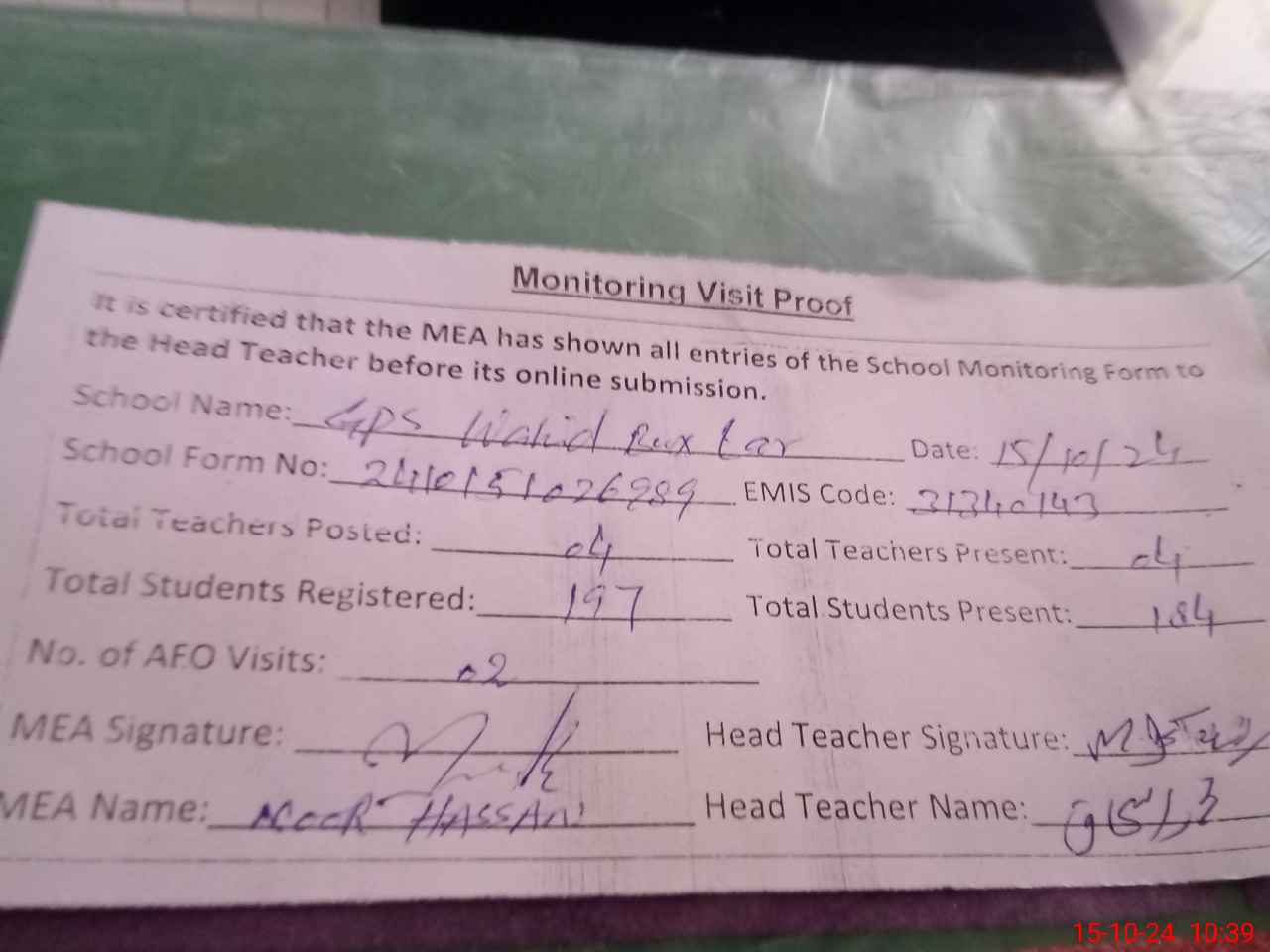 | EMIS Code: 31340143 | Name of School: GPS WAHID BUX LAR | |||