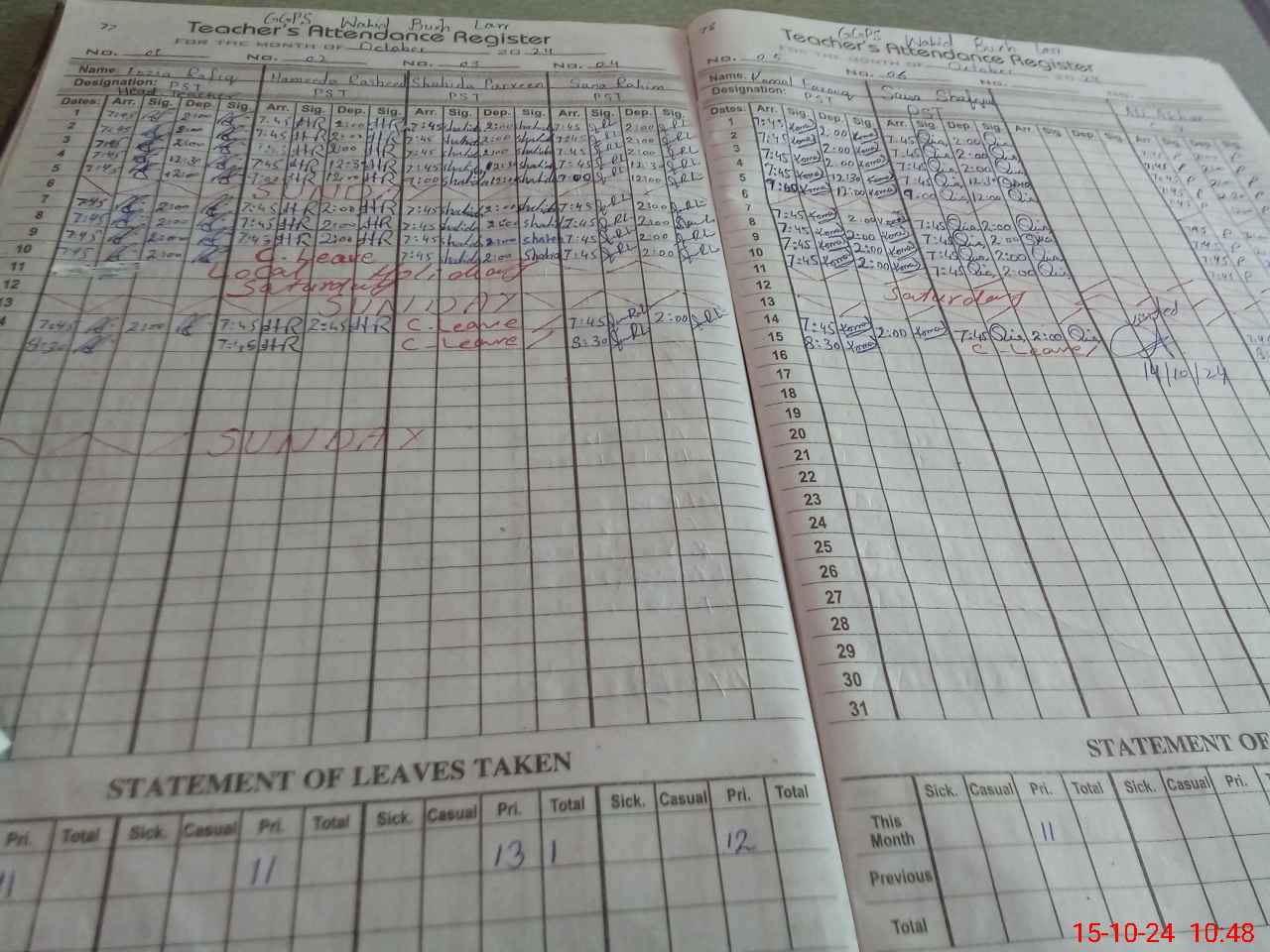| Leave | Duty | Absent | Maternity | Medical | Ex- Pak |