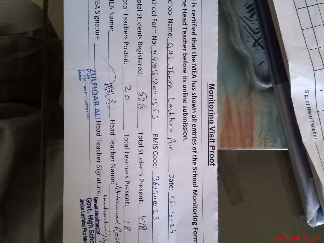 | EMIS Code: 36130023 | Name of School: GHS JHOKE LASHKAR PUR MULTAN | |||