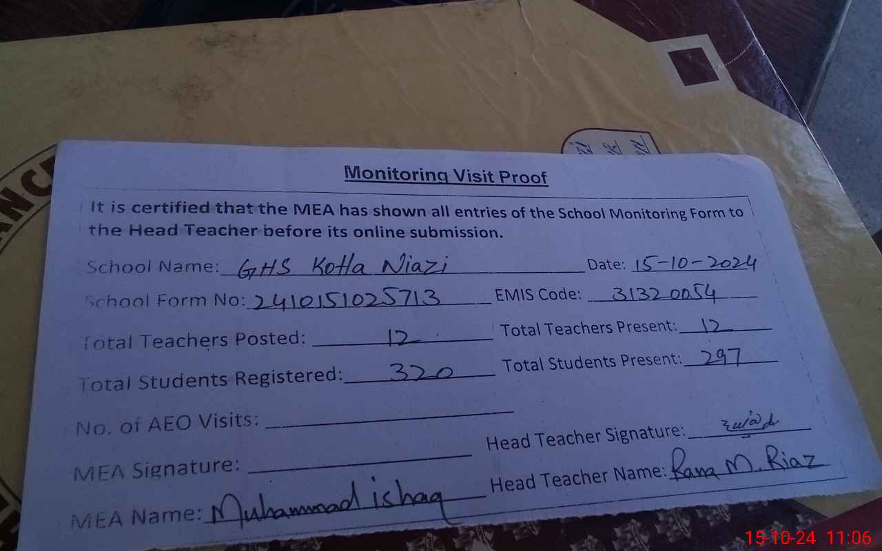 | EMIS Code: 31320054 | Name of School: GHS KOTLA NIAZI | |||