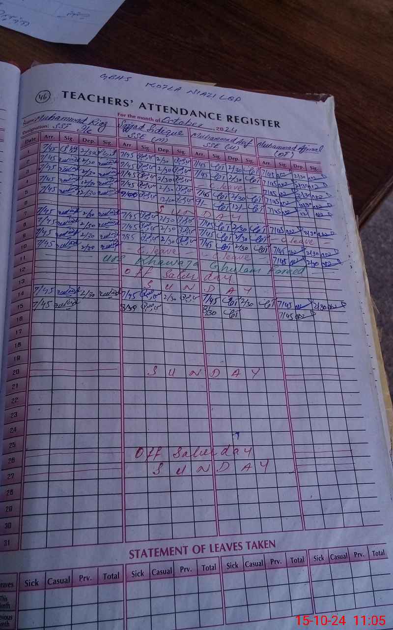 | Name: MU**** RI**** Designation: (School Headmaster's/Headmistress's) SST (BIO CHEM)) Phone/Cell Number: 03**** |