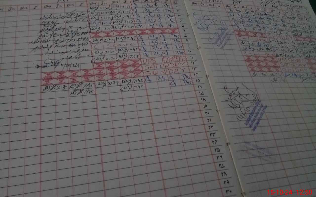| CNIC | Full Name | Designation | R/C | Absence During Last Calender Month |