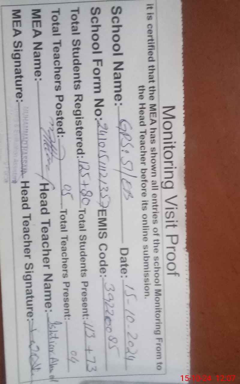 | Certified that this School was Inspected by the Undersigned MEA/DMO Today and the Information Stated Above is as Per Record. | |||||