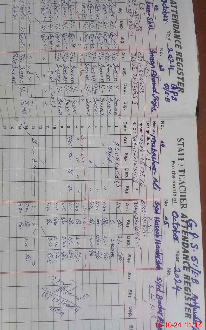 | Name: IS**** AH**** Designation: (School Headmaster's/Headmistress's) PST Phone/Cell Number: 03**** |