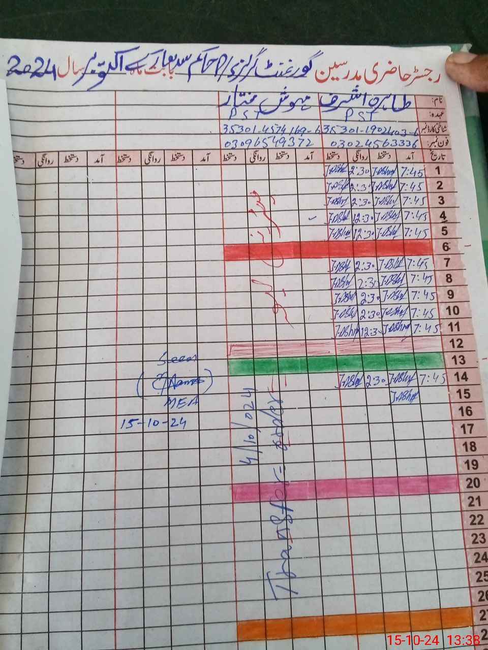 | Name: So**** Na**** Designation: (School Headmaster's/Headmistress's) PST Phone/Cell Number: 03**** |