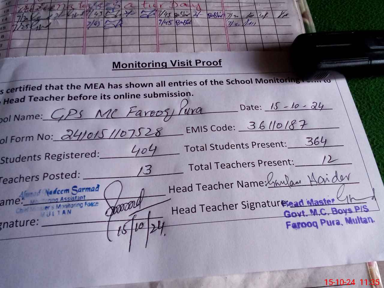 | EMIS Code: 36110187 | Name of School: GPS MC FAROOQ PURA MULTAN | |||