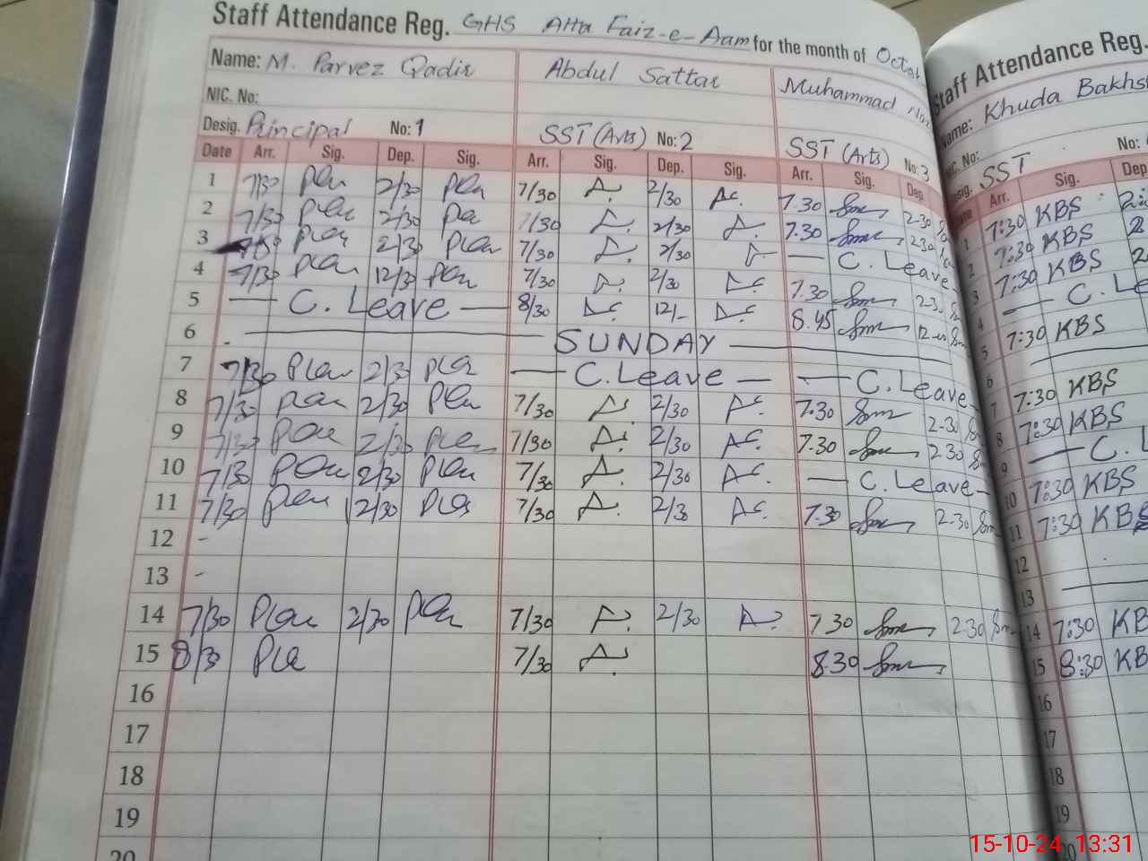 | CNIC | Full Name | Designation | R/C | Absence During Last Calender Month |