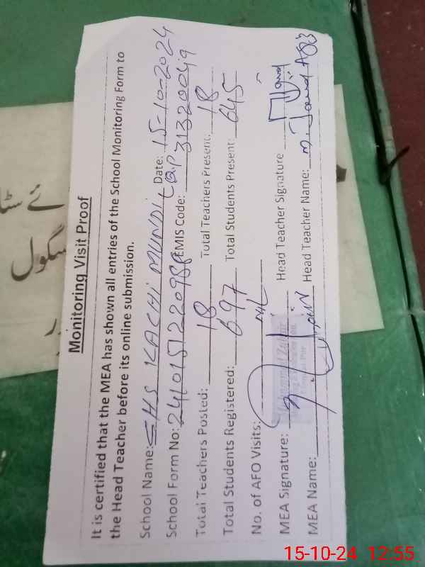| EMIS Code: 31320049 | Name of School: GHS KACHI MANDI | |||