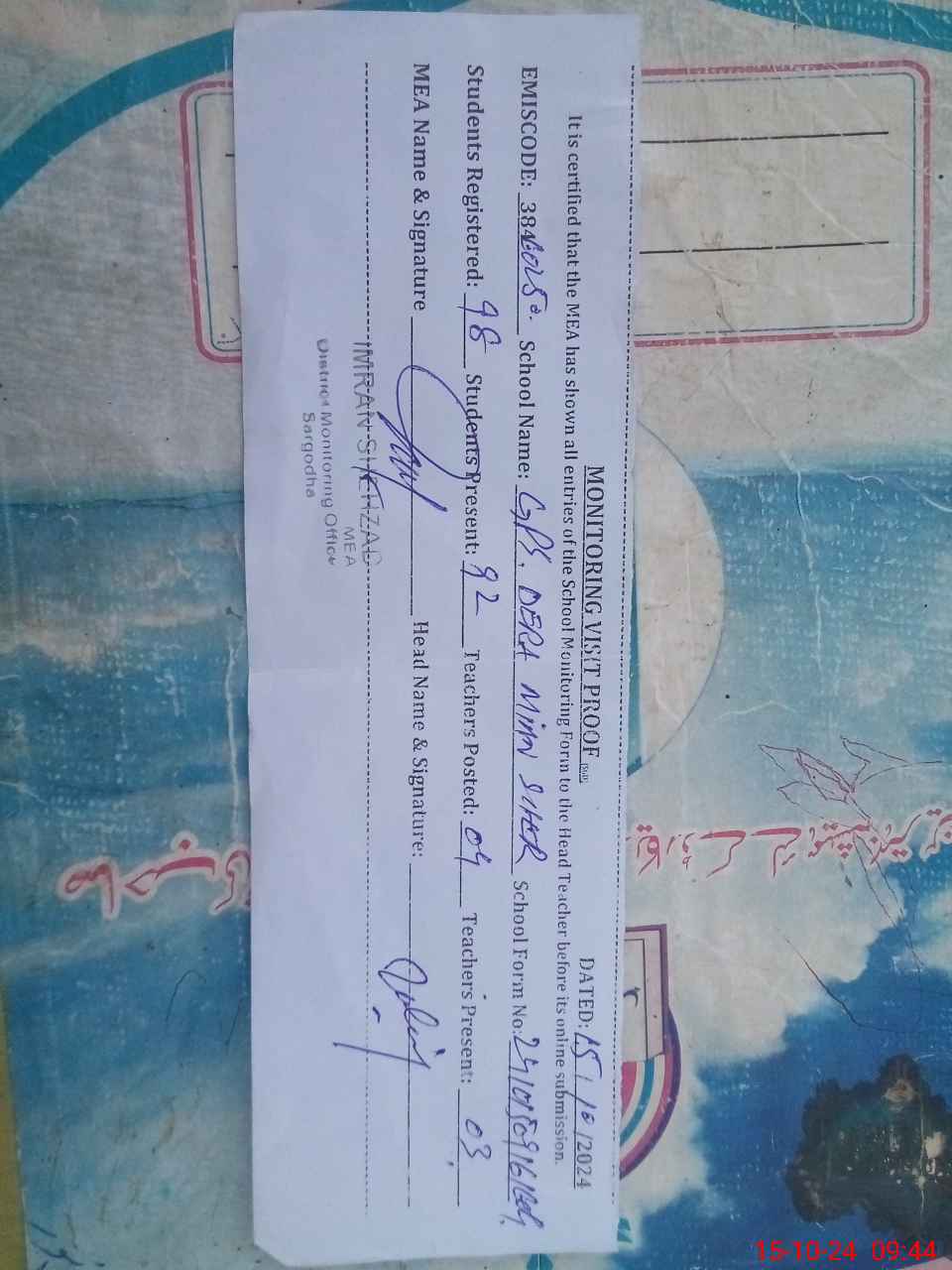 | EMIS Code: 38460250 | Name of School: GPS DERA MIAN SHER | |||