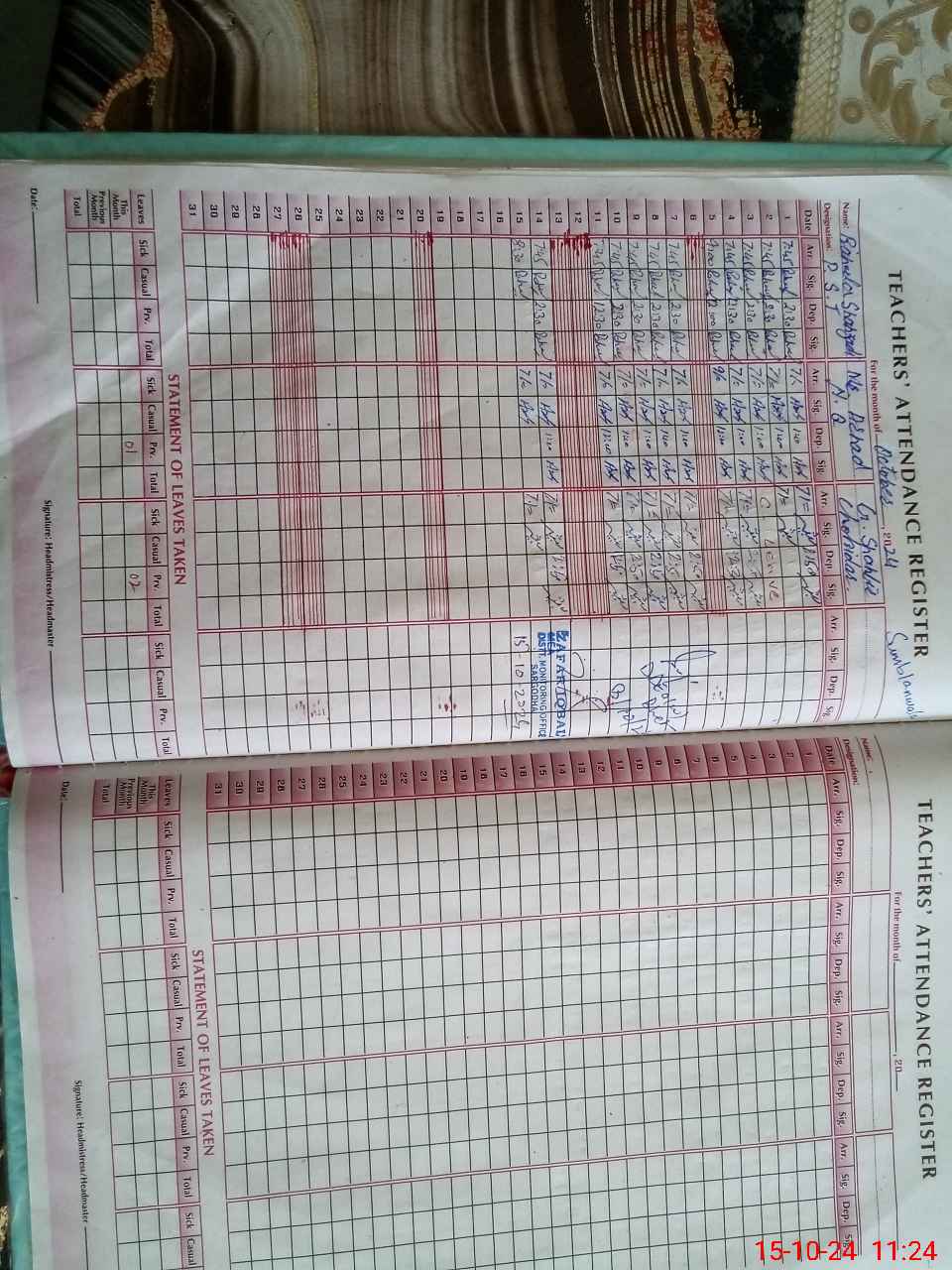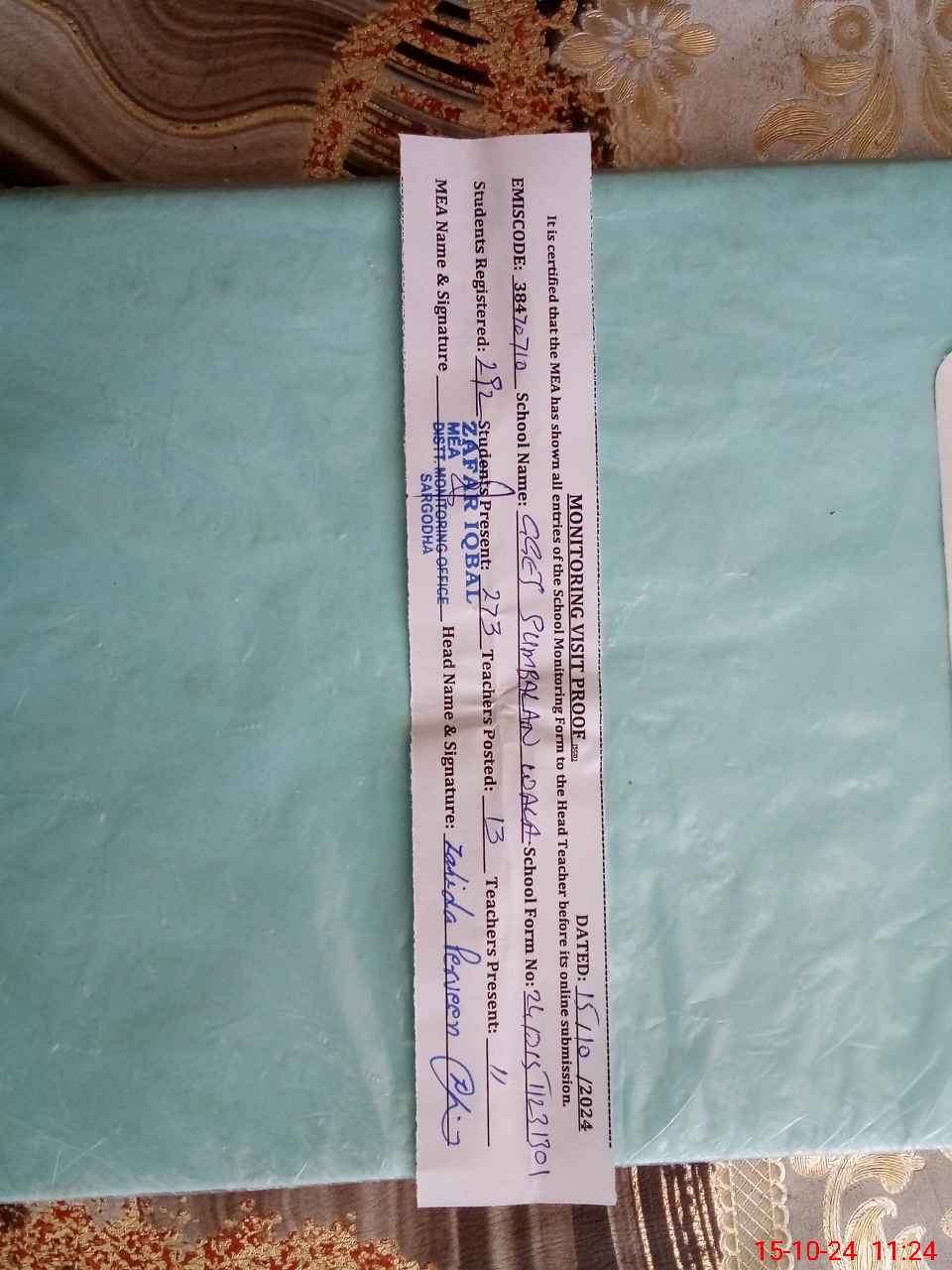| Monitoring Date: 15-10-2024 | Start Time: 15-10-2024 10:52 AM | End Time: 15-10-2024 11:25 AM | Name of MEA: ZA**** IQ**** | |