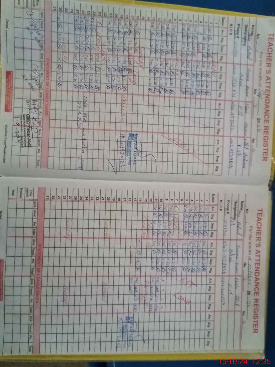 | CNIC | Full Name | Designation | R/C | Absence During Last Calender Month |