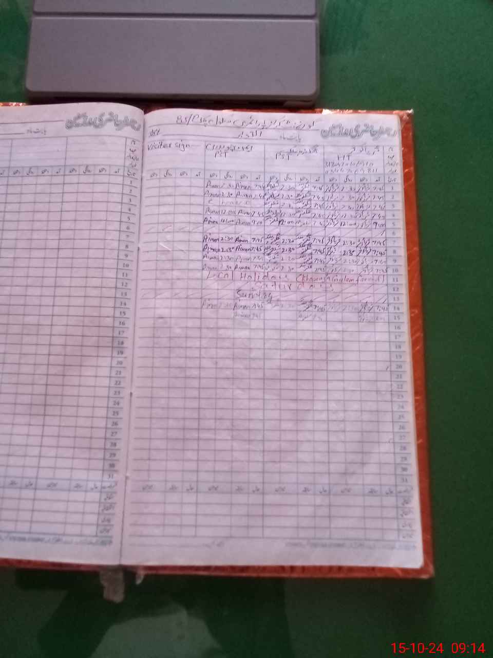 | CNIC | Full Name | Designation | R/C | Absence During Last Calender Month |