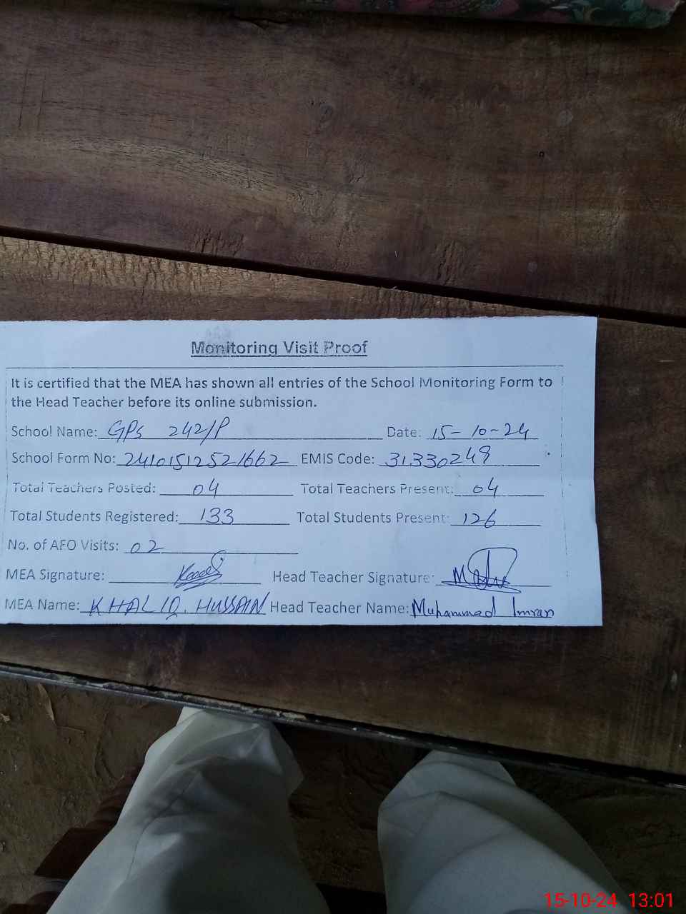 | EMIS Code: 31330249 | Name of School: GPS CHAK 242/P | |||