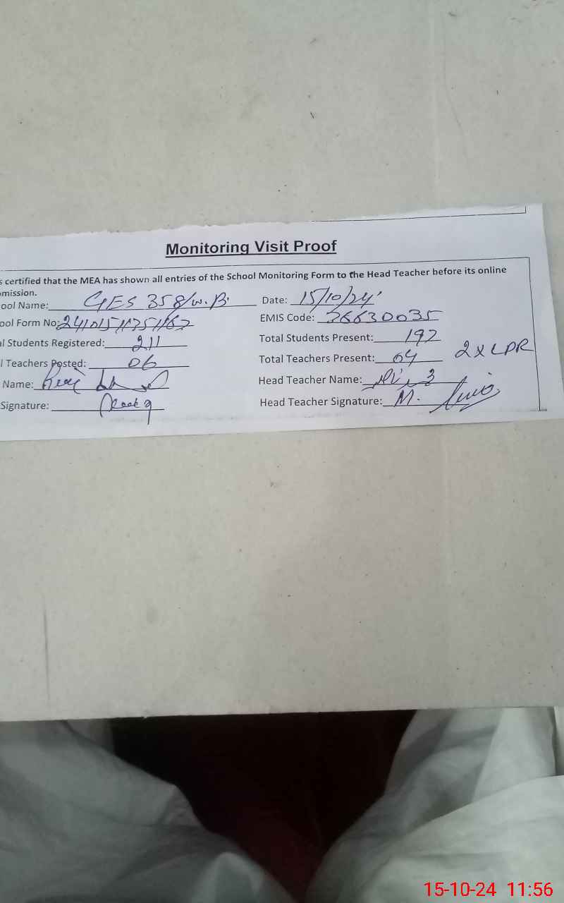 | EMIS Code: 36630035 | Name of School: GES CHAK NO. 358/WB | |||