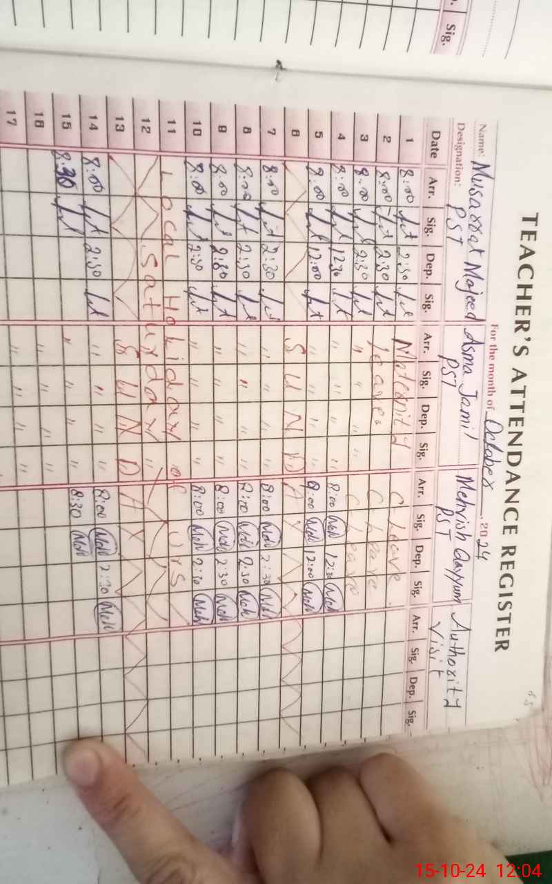 | Attendance Register | Head Teacher | MEA with School | Visit Proof |