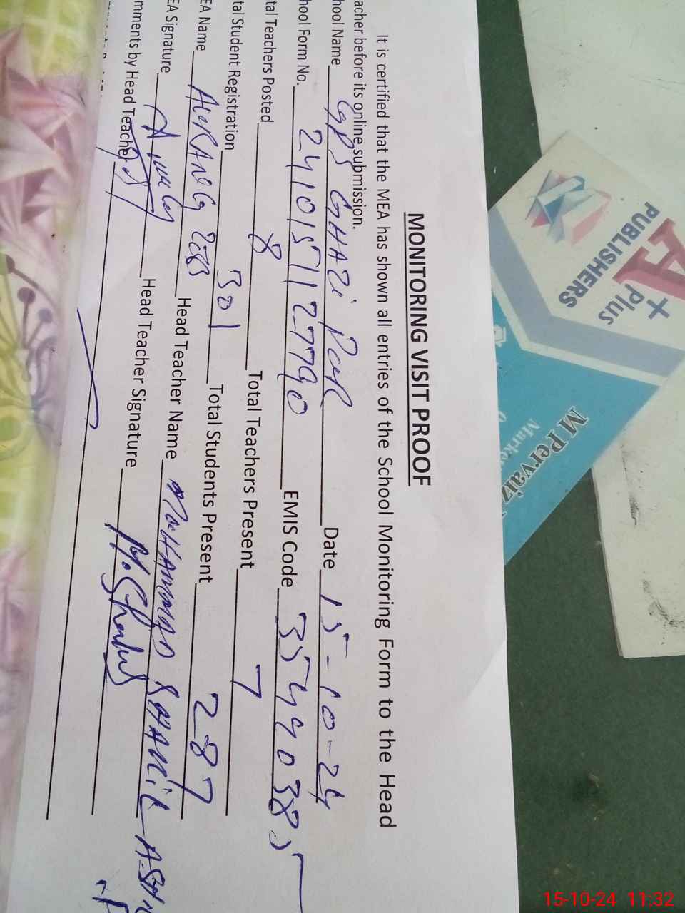 | EMIS Code: 35440385 | Name of School: GES GHAZI PUR | |||