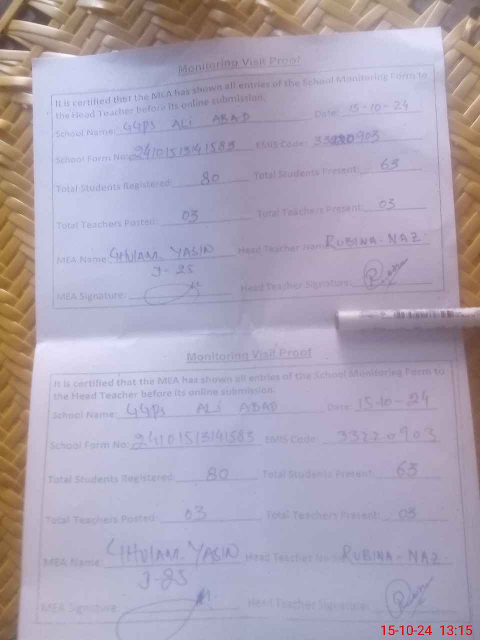 | EMIS Code: 33220903 | Name of School: GGPS ALI ABAD | |||