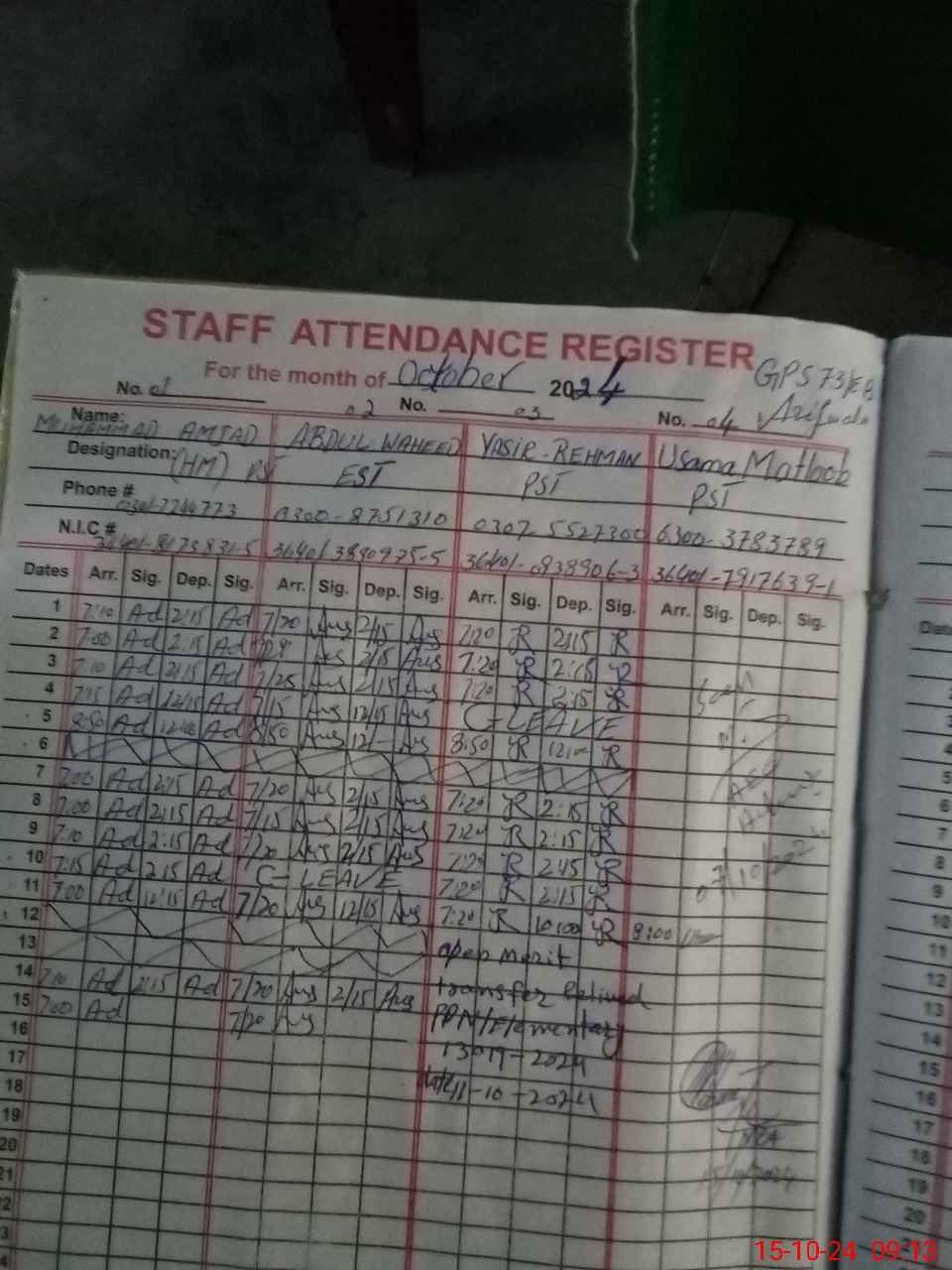 | Name: MU**** AM**** Designation: (School Headmaster's/Headmistress's) PST Phone/Cell Number: 03**** |