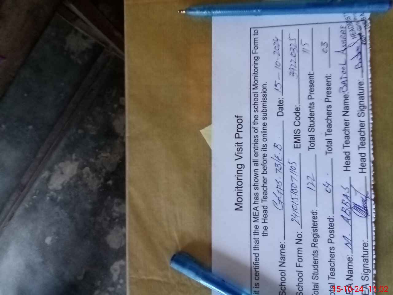 | Attendance Register | Head Teacher | MEA with School | Visit Proof |
