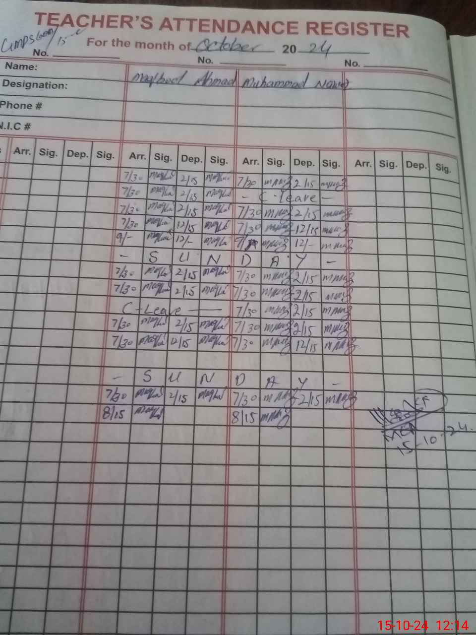 | Name: MA**** AH**** Designation: (School Headmaster's/Headmistress's) PST Phone/Cell Number: 03**** |