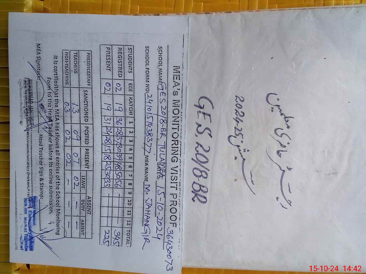 | Certified that this School was Inspected by the Undersigned MEA/DMO Today and the Information Stated Above is as Per Record. | |||||
