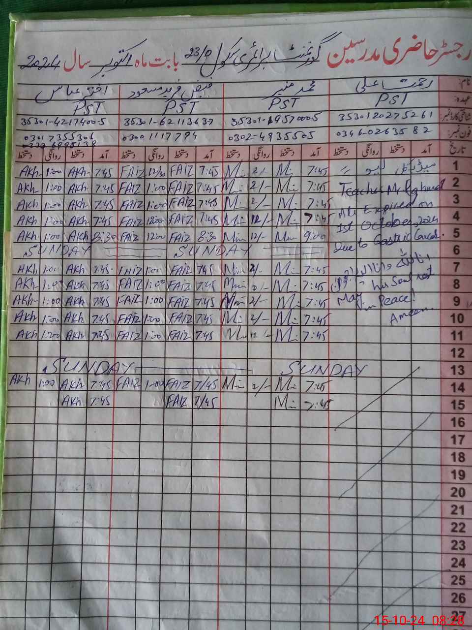 | Name: Fa**** Fa**** Ma**** Designation: (School Headmaster's/Headmistress's) PTC/JV Phone/Cell Number: 03**** |
