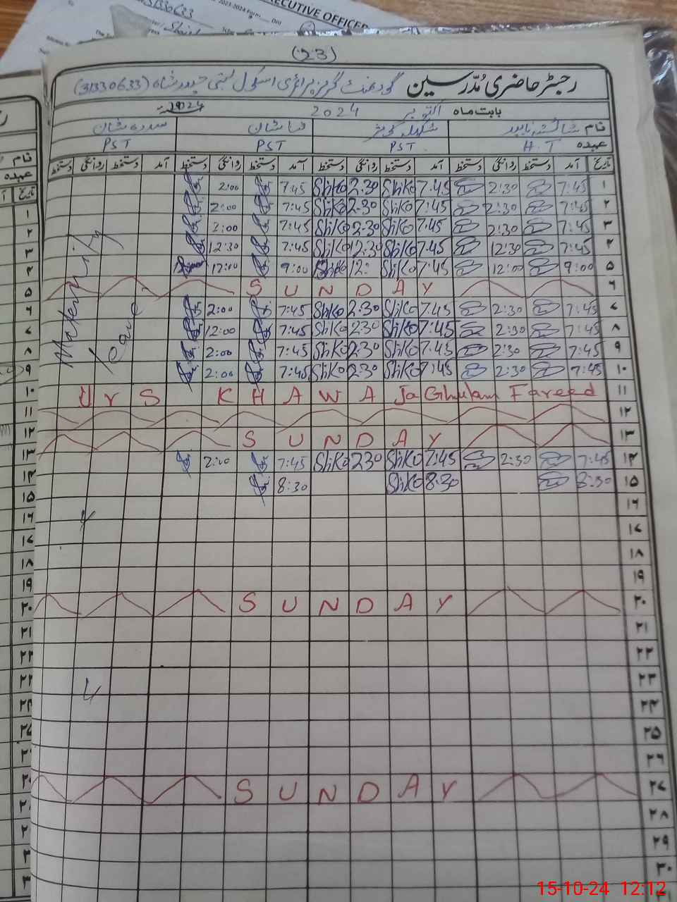 | CNIC | Full Name | Designation | R/C | Absence During Last Calender Month |