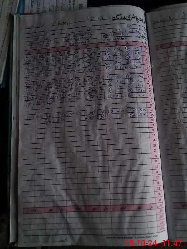 | CNIC | Full Name | Designation | R/C | Absence During Last Calender Month |