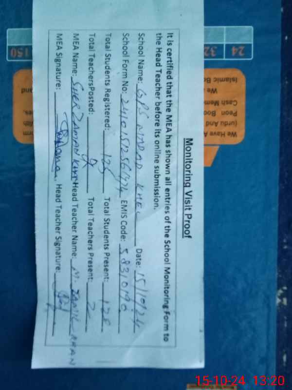 | EMIS Code: 38310190 | Name of School: GPS MADAD KHEL | |||