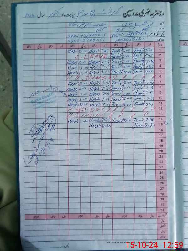 | Name: Ma**** UrRe**** Sh**** Designation: (School Headmaster's/Headmistress's) Pst Phone/Cell Number: 03**** |