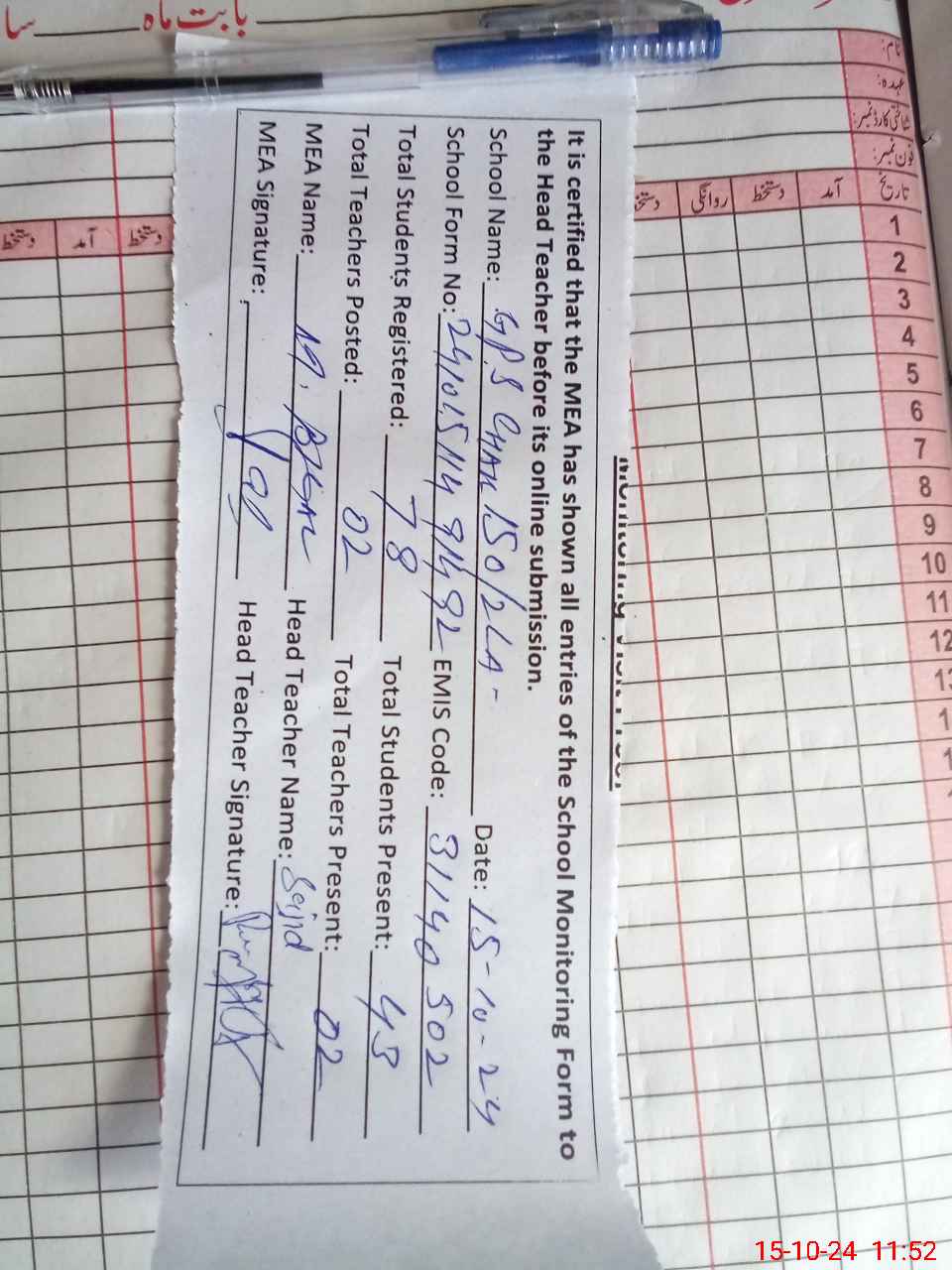 | EMIS Code: 31140502 | Name of School: GPS CHAK NO.150/2-LA | |||