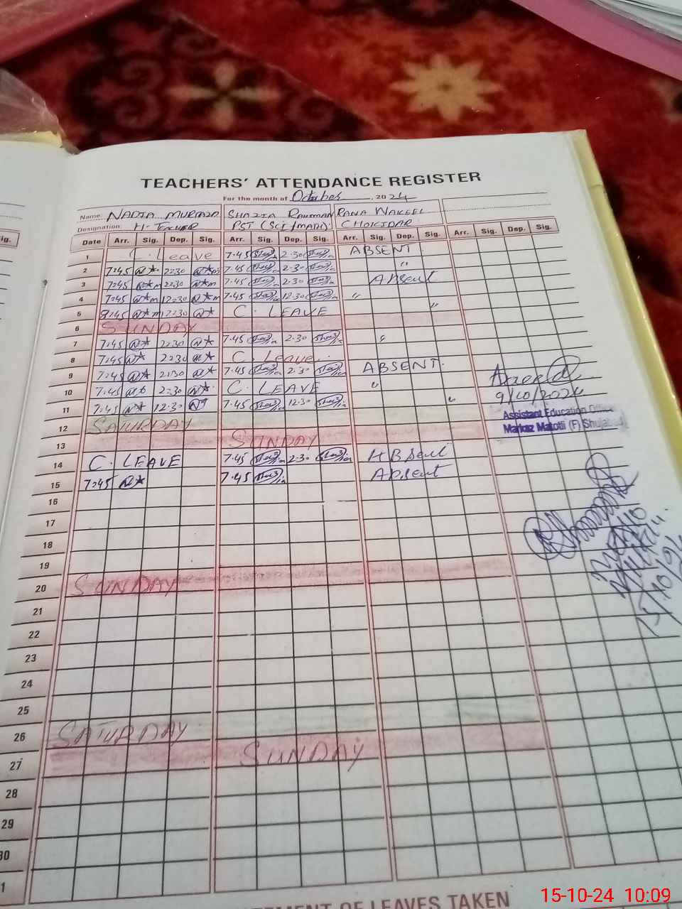 | 11**** | Ra**** Wa**** Ah**** | CHOWKEDAR | 0 | 0 | 0 | 0 | 0 | 0 | 0 | 0 | 0 | Absent (Un-Authorized) | |
