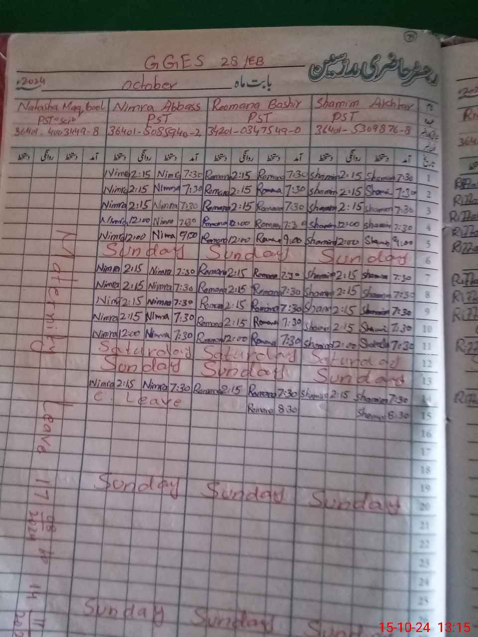 | 36**** | Ni**** Ab**** | PST | Regular | 2 | 0 | 0 | 0 | 0 | 0 | 0 | 0 | 2 | Casual |