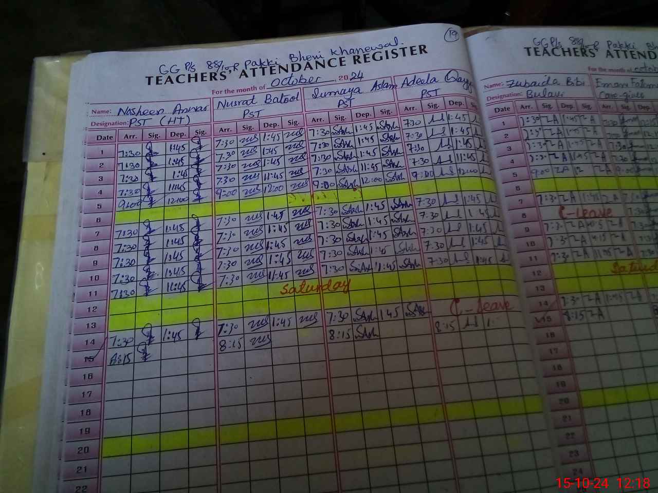 | CNIC | Full Name | Designation | R/C | Absence During Last Calender Month |