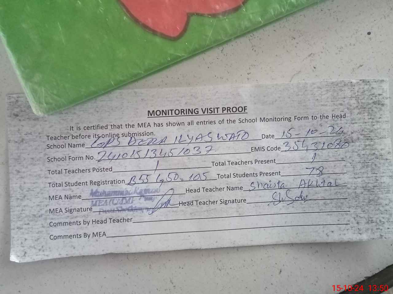 | EMIS Code: 35431080 | Name of School: GPS DERA ILYAS WATTO | |||