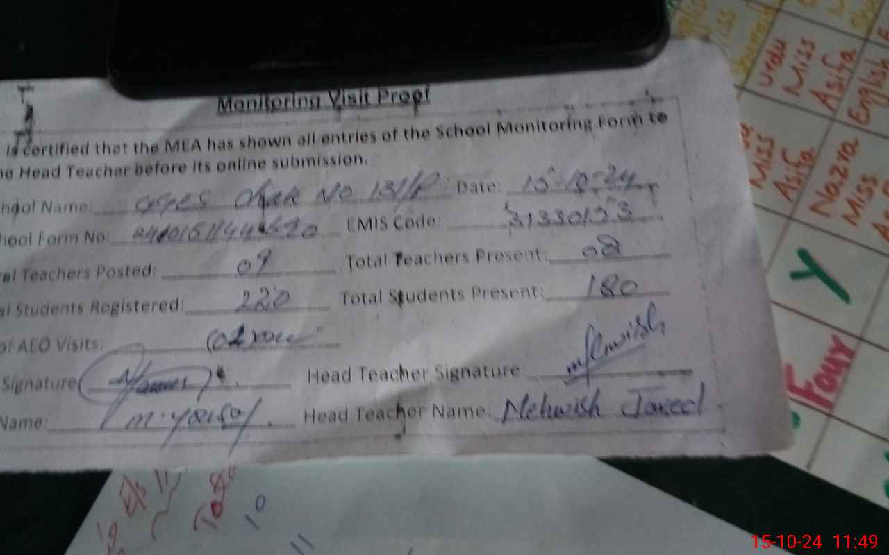 | Certified that this School was Inspected by the Undersigned MEA/DMO Today and the Information Stated Above is as Per Record. | |||||