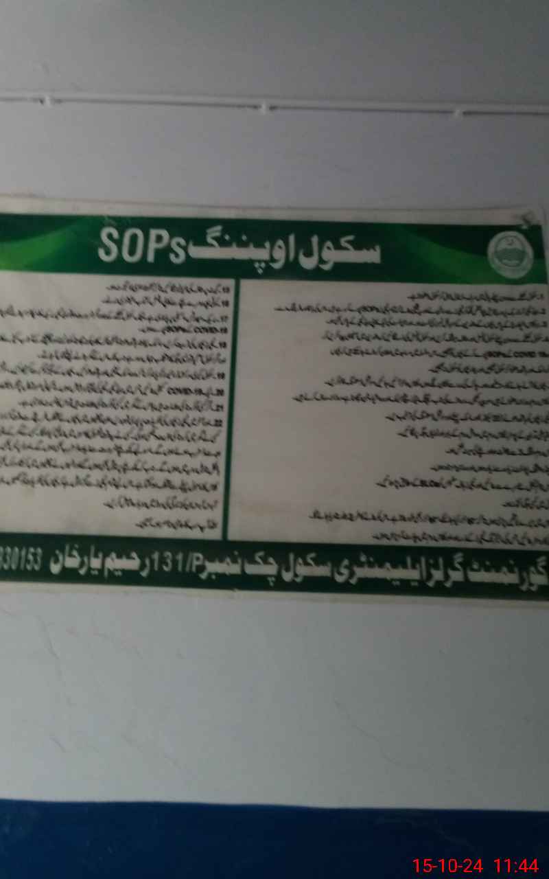 | EMIS Code: 31330153 | Name of School: GGES CHAK NO. 131/P | |||