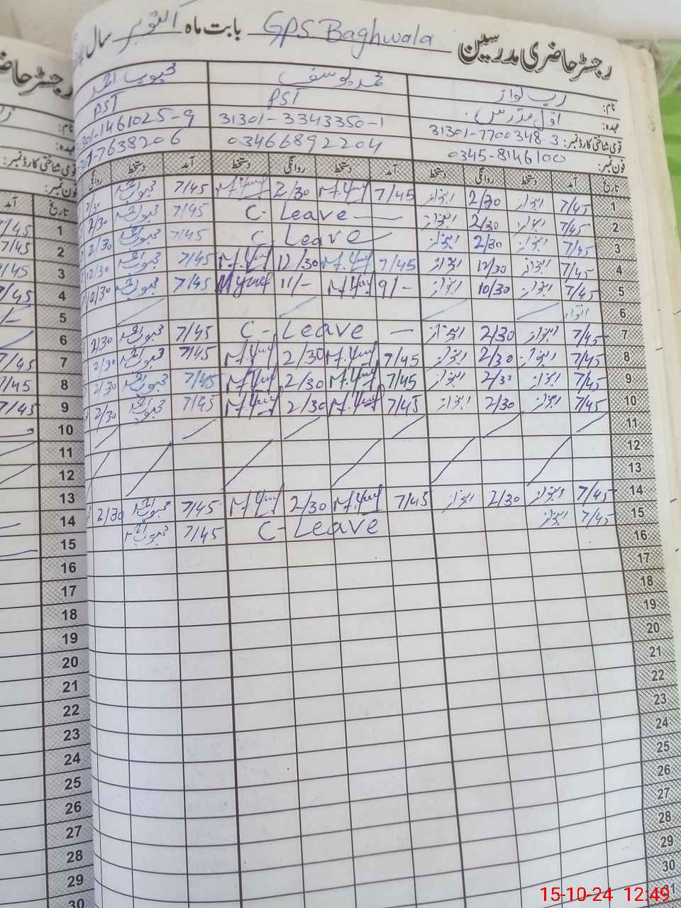 | CNIC | Full Name | Designation | R/C | Absence During Last Calender Month |