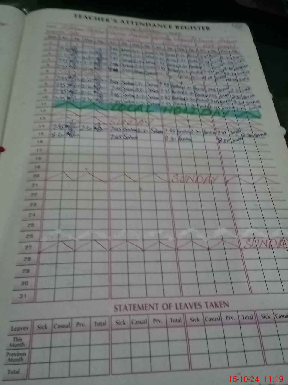 | No. of Students Present - Female | 25 | 0 | 12 | 28 | 28 | 15 | 21 | 10 | 5 | 7 | 9 | 160 | ||||