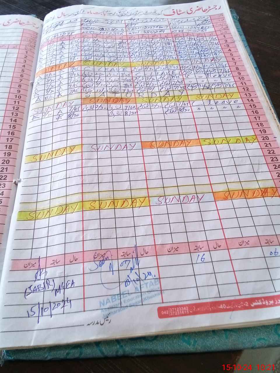 | CNIC | Full Name | Designation | R/C | Absence During Last Calender Month |